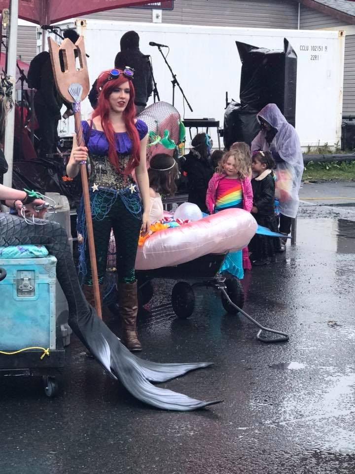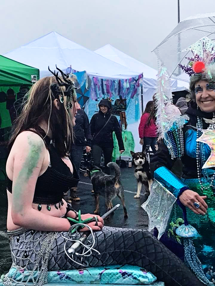 We have finally recovered from the 2018 Seward Mermaid Festival! It was rainy, windy, so so very wet day – but we persevered and hung out most of the day – AND had fun :).